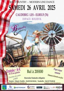 L’Espace Bourvil accueillera un grand bal country le samedi 26 avril à 18h30, organisé par l’association Butterfly Country. Un rendez-vous festif et entraînant, ouvert à tous, pour plonger dans l’univers de la danse country.