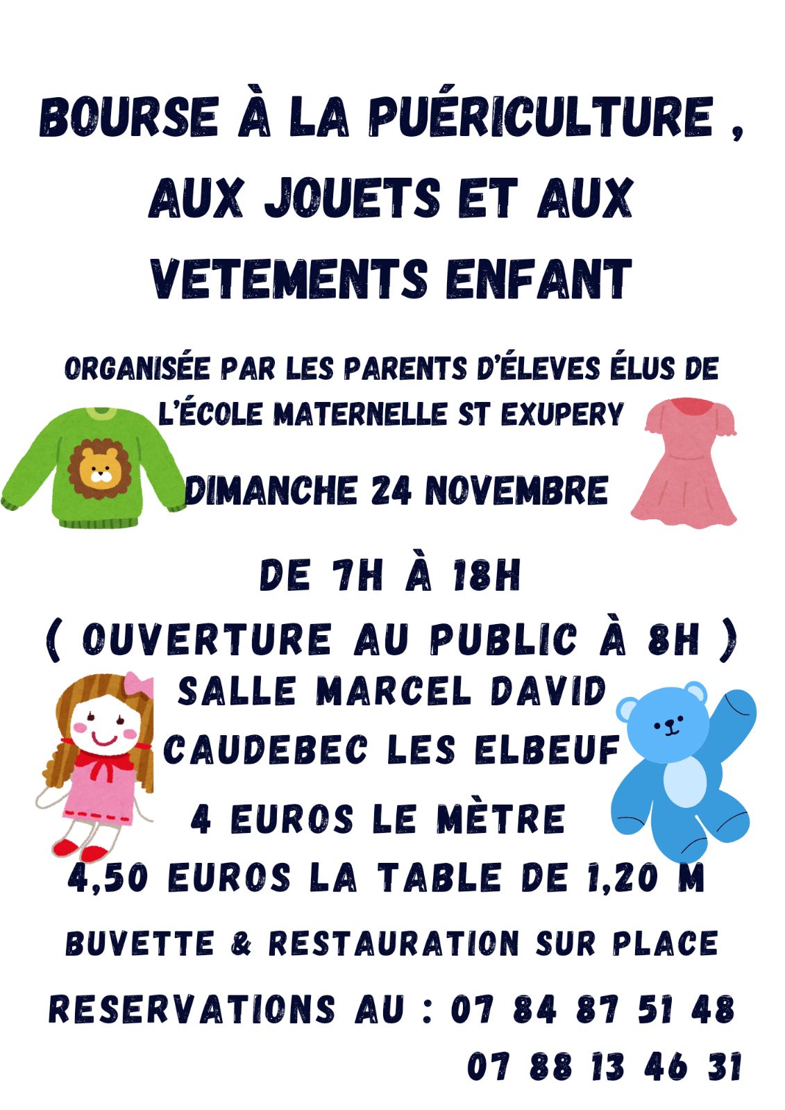 Une bourse à la puériculture, organisée par les parents d’élèves élus de l’école maternelle Saint-Exupéry, se tiendra dimanche 24 novembre de 8h à 18h à la Marcel David.