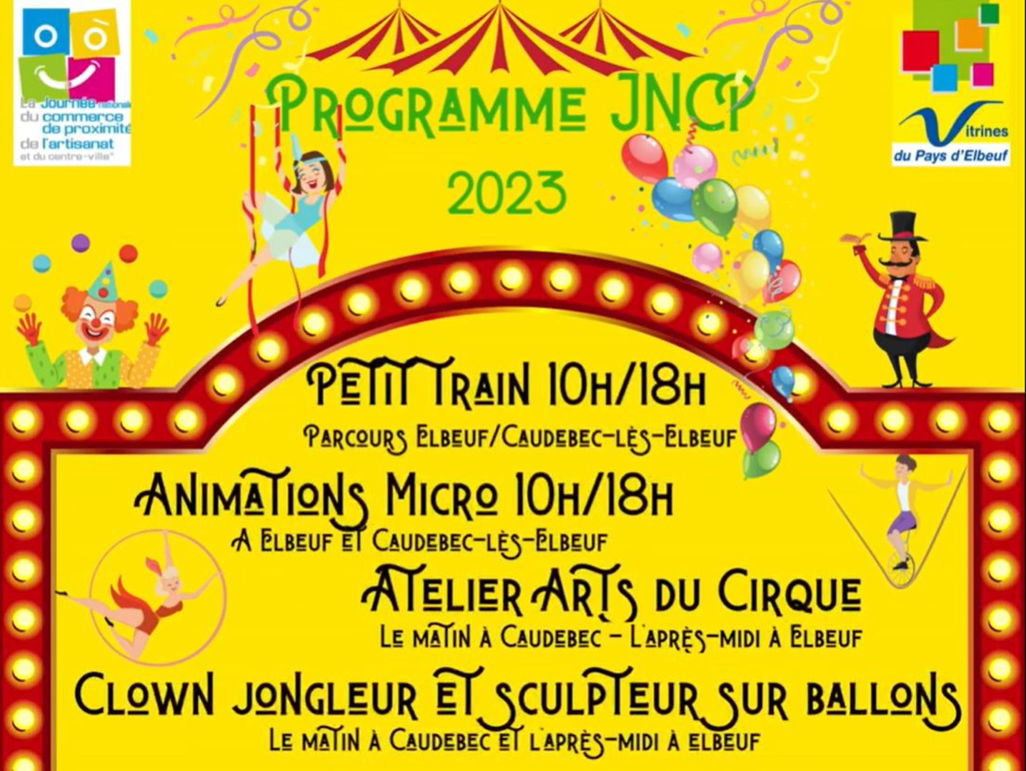 Toute la journée, l’association et les commerçants vous proposeront des animations gratuites dans le centre-ville de Caudebec. Des chèques cadeaux seront à gagner chez vos commerçants et un atelier de découverte des Arts du cirque sera proposé sous un mini-chapiteau. Le traditionnel petit-train circulera également dans les rues commerçantes de 10h à 18h. Un sculpteur sur ballons, un jongleur et des déambulations d’artistes feront également le bonheur des enfants !
