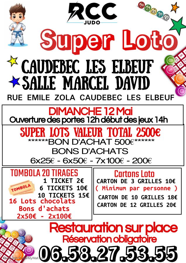 Le RCC Judo organise un loto le dimanche 12 mai à la salle Marcel David. Ouverture des portes à 12h et début des jeux à 14h.