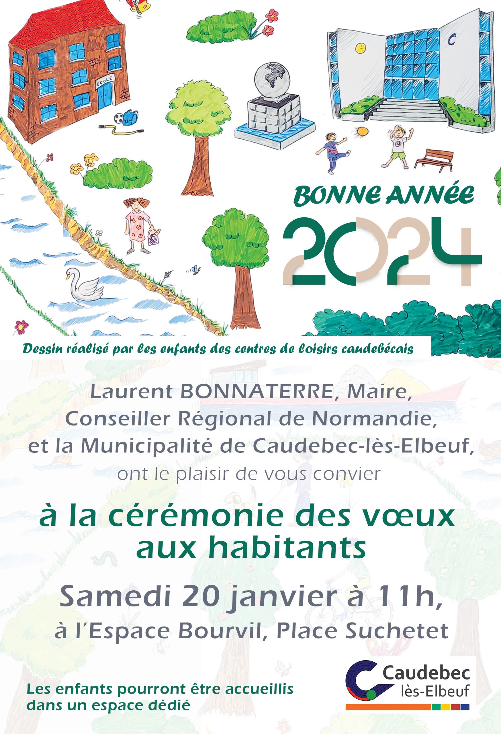 Laurent BONNATERRE, Maire, Conseiller Régional de Normandie, et la municipalité de Caudebec-lès-Elbeuf ont le plaisir de vous convier à la cérémonie des vœux aux habitants le samedi 20 janvier 2024 à 11h à l’espace Bourvil.